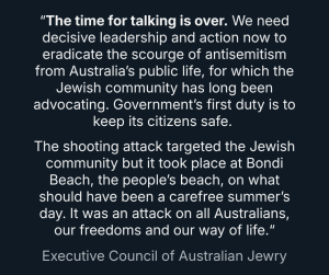 The Australian government repeatedly failed to act on clear warning signs following attacks and escalating threats against the Jewish community. Alex Ryvchin, co-CEO of the Executive Council of Australian Jewry, was targeted earlier this year when an assailant firebombed his former home. Following the Hanukkah attack, he stated: “The writing was on the wall. We look to our government to keep us safe, to set the tone, to lead. And clearly, there’s been a colossal failure.”