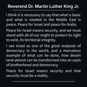 Dr. King’s public record stands in stark contrast to contemporary trends. Following looting of Jewish stores in NY by Blacks in 1964, Dr. King responded: “I solemnly pledge to do my utmost to uphold the fair name of the Jews. Not only because we need their friendship – but mainly because bigotry in any form is an affront to us all.
