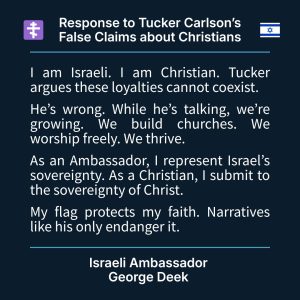 Carlson and other major influencers, including Candace Owens and Nick Fuentes – along with pro-Palestinian activists – also have promoted false narratives about Christians in Israel and the Middle East. They falsely claimed that the number of Christians living in Israel is decreasing and that they do not have equal rights. Israeli Ambassador George Deek responded to Carlson’s interview: